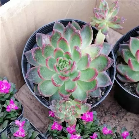 女雏是景天科石莲花属的多肉植物。特征是小巧的株形和橙粉色叶缘。极易生侧芽,…