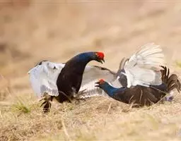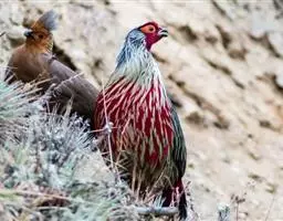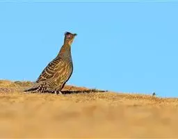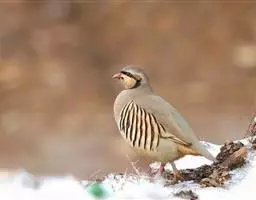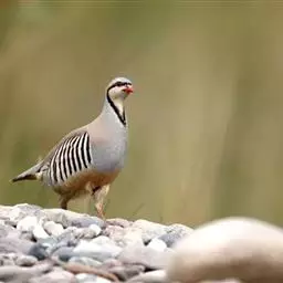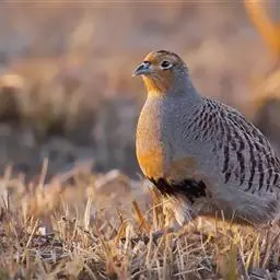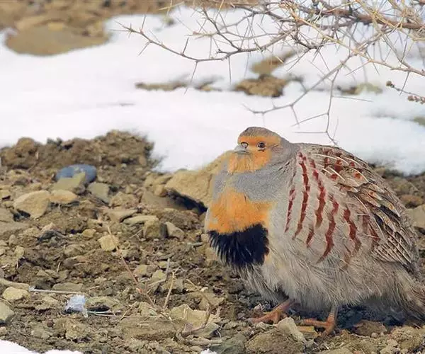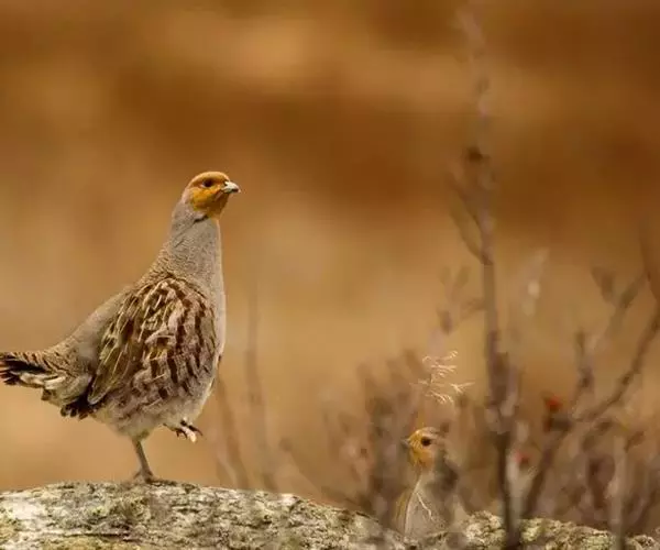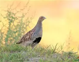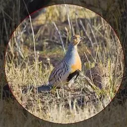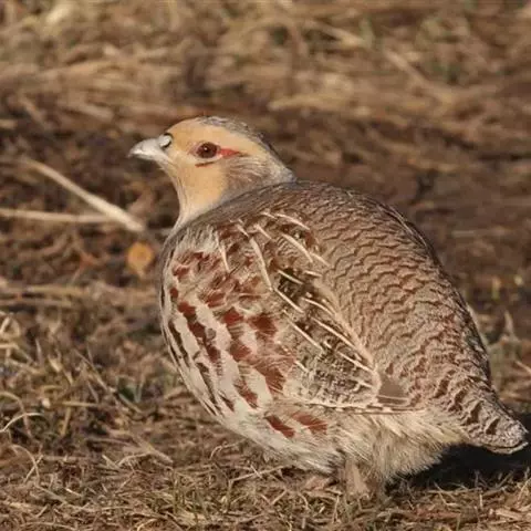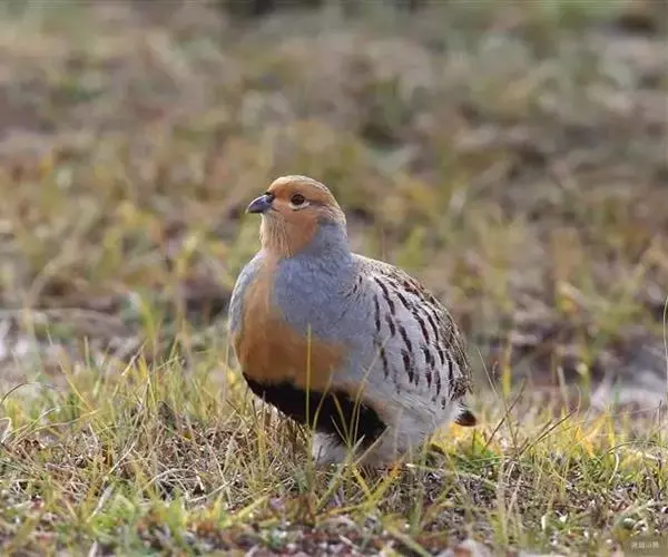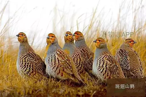 斑翅山鹑(学名:Perdix dauurica)体长250-310毫米,是体形略小的灰褐色鹑类。雄鸟的脸、喉中部及腹部桔黄色,腹中部有一倒"U"字形黑色斑块。与灰山鹑的区别在于胸为黑色而非栗色,喉部桔黄色延至腹部,喉部有羽须。雌鸟胸部无橘黄色及黑色,但有"羽须"。栖息于平原森林草原、灌丛草地、低山丘陵和农田荒地等各类生境中。以植物性食物为食,包括灌木和草本植物的嫩叶、嫩芽、浆果、草杆等,也吃蝗虫、蚱蜢等昆虫和小型无脊推动物。分布于俄罗斯的西伯利亚、乌苏里、蒙古和中国东北、华北和西北等北方大部分地区。