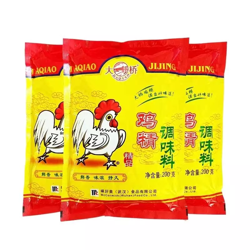 “大桥”鸡精用料讲究,所使用的原辅料全部为纯天然材料,并严格按优于行业标准的要求组织生产,严格按食品安全卫生法规要求进行销售;产品销售前均要通过质检部门的严格检验;被中国调味品协会授予“国家质量达标食品”。适合调制各式菜肴,无论煮汤、炒菜、火锅、凉拌、面食、米线、腌肉、煮粥以及作为食品加工的基础原料等。具有含维生素和矿物质钙、磷、铁等营养复合化特点。
