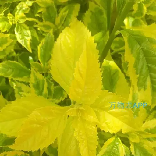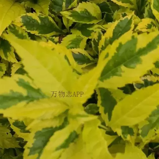 金叶假连翘(Duranta repens ‘Variegata’),常绿灌木,株高0.2-0.6米,枝下垂或平展。叶对生,叶长卵圆形,色金黄至黄绿,卵椭圆形或倒卵形,长2—6.5厘米,中部以上有粗齿。花蓝色或淡蓝紫色,总状花序呈圆锥状,花期5-10月。核果橙黄色,有光泽。原产墨西哥至巴西,中国南方广为栽培,华中和华北地区多为盆栽。