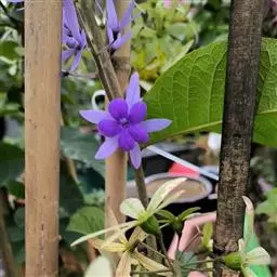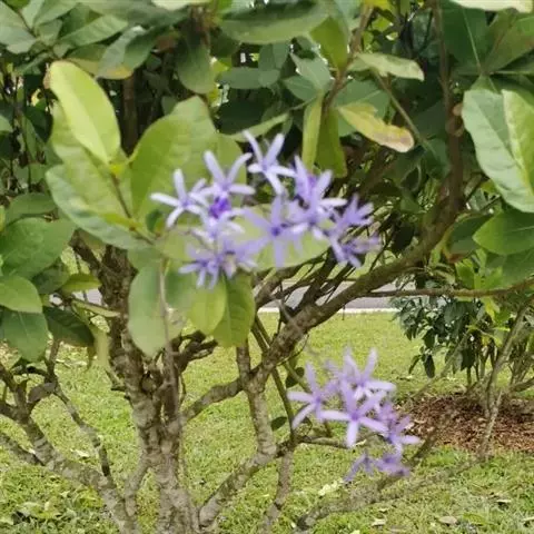 蓝花藤是马鞭草科、蓝花藤属木质藤本,长达5米,叶对生,革质,触之粗糙,椭圆状长圆形或卵状椭圆形,…