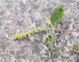 皱果苋(学名:Amaranthus viridis L.)苋科一年生草本,高40-80厘米,全体无毛;茎直立,有不显明棱角,稍有分枝,绿色或带紫色。叶片卵形、卵状矩圆形或卵状椭圆形,顶端尖凹或凹缺,少数圆钝,有1芒尖,基部宽楔形或近截形,全缘或微呈波状缘;种子近球形,直径约1毫米,黑色或黑褐色,具薄且锐的环状边缘。花期6-8月,果期8-10月。