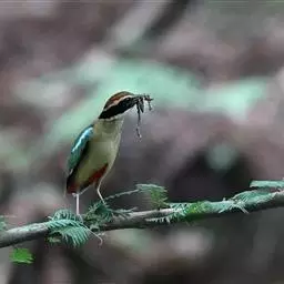 蓝翅八色鸫是雀形目八色鸫科的鸟类。体长17-20厘米,体重类约48-70克,体型圆胖,尾短,腿长,…