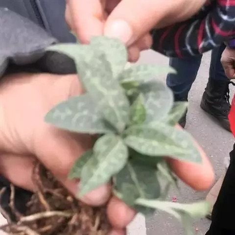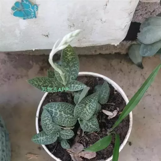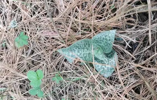 斑叶兰(学名:Goodyera schlechtendaliana Rchb. f.):植株高15-35厘米。根状茎伸长,茎状,匍匐,具节。茎直立,绿色,具4-6枚叶。叶片卵形或卵状披针形,上面绿色,具白色不规则的点状斑纹,背面淡绿色,具柄。花茎直立,总状花序具几朵至20余朵疏生近偏向一侧的花;长8-20厘米;花较小,白色或带粉红色,半张开;萼片背面被柔毛,具1脉;花瓣菱状倒披针形,无毛,长7-10毫米,宽2.5-3毫米,先端钝或稍尖,具1脉;唇瓣卵形。花期8-10月。