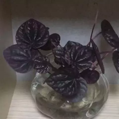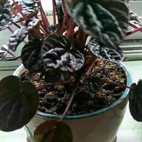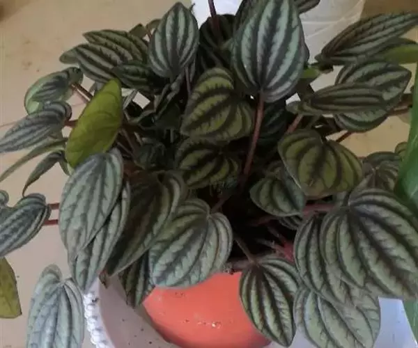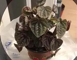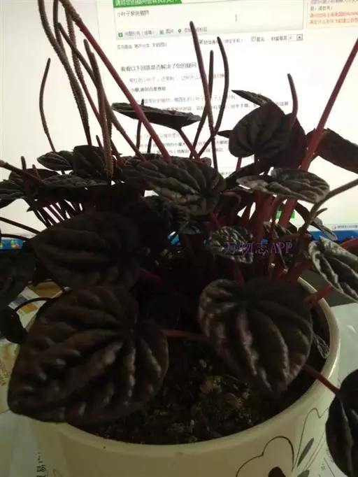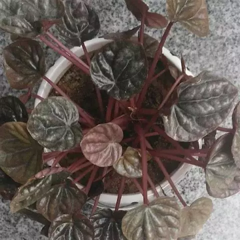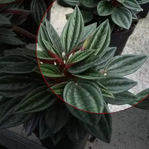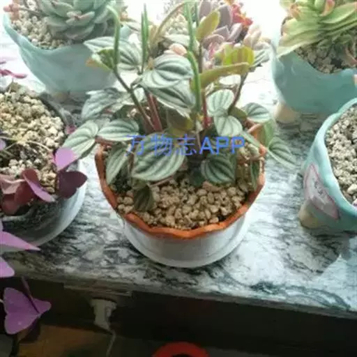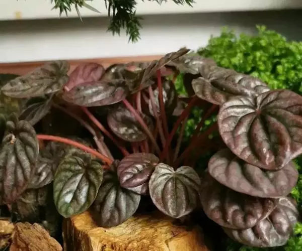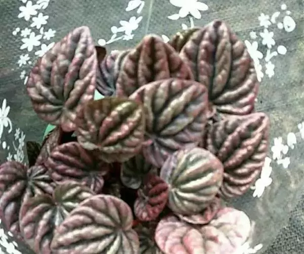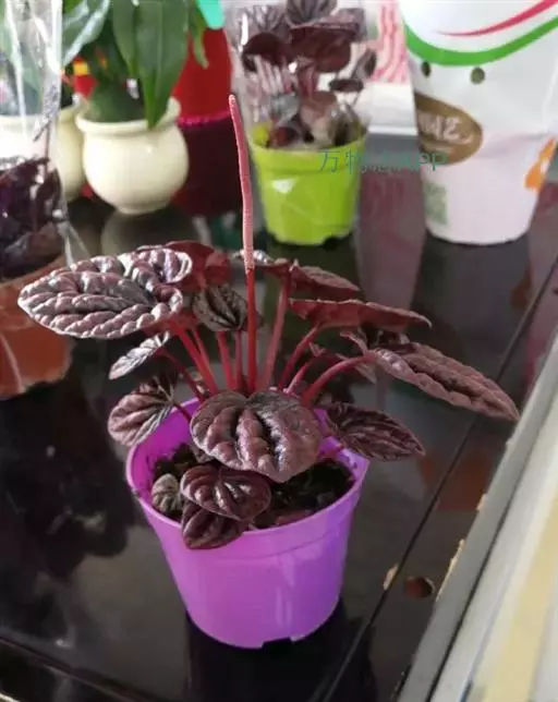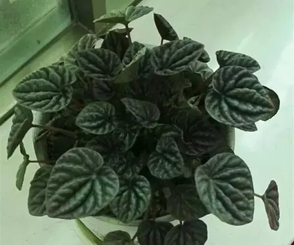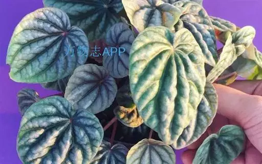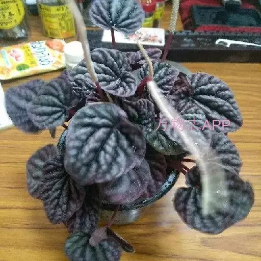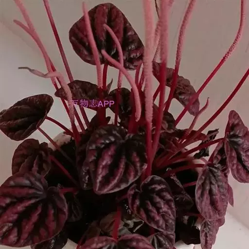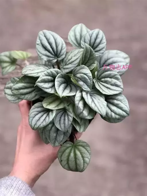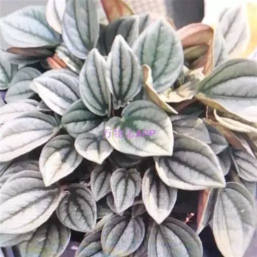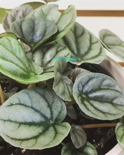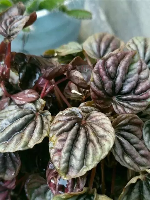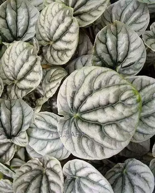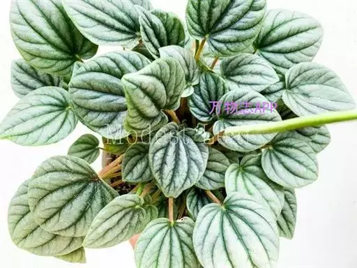 皱叶椒草 簇生型植株,茎短,叶圆心形丛生于短茎顶。叶柄长10~15 cm,株高约20 cm。叶面浓绿有光泽,叶背灰绿。主脉及第一侧脉向下凹陷,使叶面折皱不平。