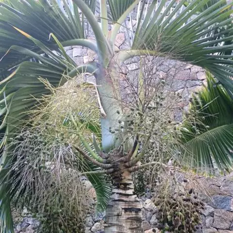 糖棕是棕榈科,糖棕属植株粗壮高大,乔木状植物。高可达33米,直径最粗可达90厘米。叶大型,掌状分裂…