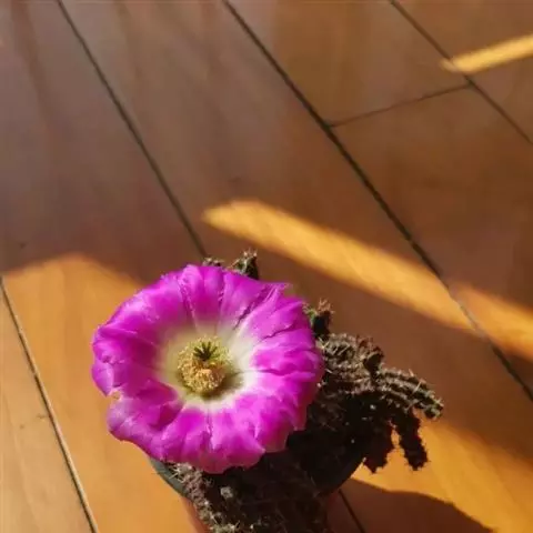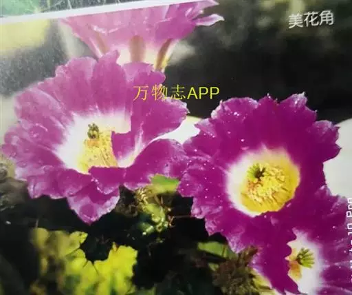 美花角植株有点大,有5-6棱,球体绿色,长柱型,基本五角型,刺生疣凸角尖上,有黄白色刺4-5枚。春、夏季节开花。美花角花开粉色或玫红色,叶片有绢质感,花有雌蕊1枚,雄蕊多枚,黄色,异花授粉。