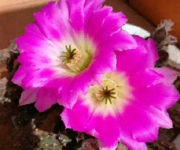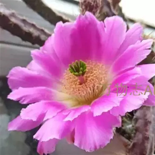 美花角植株有点大,有5-6棱,球体绿色,长柱型,基本五角型,刺生疣凸角尖上,有黄白色刺4-5枚。春、夏季节开花。美花角花开粉色或玫红色,叶片有绢质感,花有雌蕊1枚,雄蕊多枚,黄色。异花授粉。美花角配土比较简单,珍珠岩混合了泥炭,加了蛭石和煤渣,比例随意,透气为主,土表铺设了浮石。美花角这个品种还是比较耐暴晒的,生长期干透给水,成株尽量少点水,不然就容易徒长的很长哦,群生美花角长的都比较高,光照不够也容易长高。