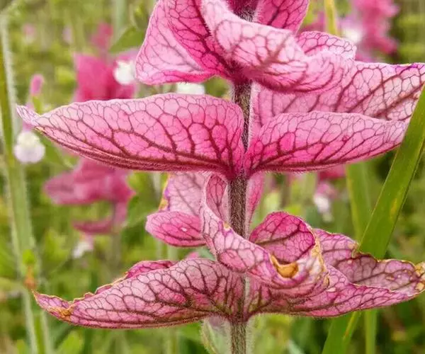 彩苞鼠尾草(Salvia viridis)为唇形科、鼠尾草属一年生草本,株型直立,叶对生长椭圆形,色灰绿,叶表有凹凸状织纹,有香味,及具观尝性与食用性;花朵有纸质苞片环绕,粉红至浅蓝花有深色条纹;花期夏季。