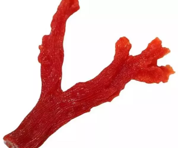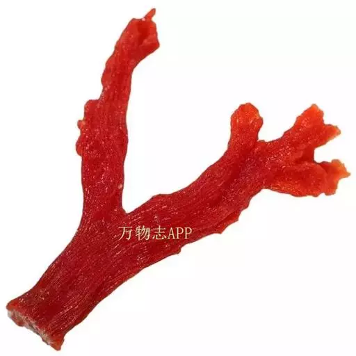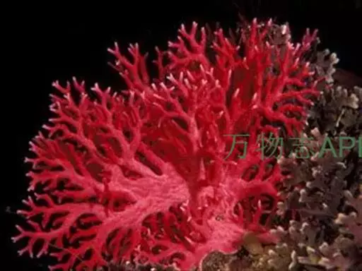 红珊瑚(学名:Corallium rubrum)营群体生活。个体直径一般为0.5mm~2cm,每个个体具8个羽状触手。隔膜8个不成对,隔膜肌向腹生长,隔膜丝单叶状。仅有一个口道沟,位于腹面。骨骼多在体内,或由体内发生后伸向体表。具有钙质中轴骨,呈树状分枝,但不在一个平面上,骨骼呈淡粉红色至深红色。除中轴骨外,均有钙质骨针分布在中胶层中,常与造礁珊瑚生活在一起。骨骼质地坚密、色泽鲜艳,常作宝石或雕刻材料,生长在温度高于20℃的赤道及其附近的热带、亚热带地区。中国古代皇帝的朝珠即由红珊瑚制成;也可入药,有定惊明目之功效。由于大量开采,数量急剧减少,被列为中国一级保护动物。