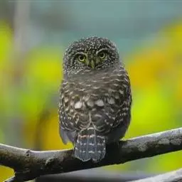 黄嘴角鸮:小型鸟类,体长18-21厘米。的茶黄褐色角鸮。眼黄色,嘴奶油色,特征为无明显的纵纹或横斑,…