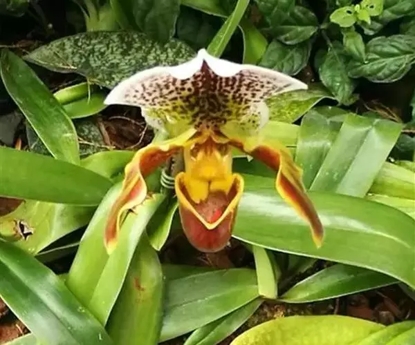 虎斑兜兰兰科,兜兰属地生或半附生植物。叶基生;数枚至多枚,叶片带形、革质。花葶从叶丛中长出,花苞片…
