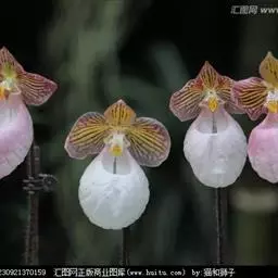 (五) 换盆: 通常在开过花后,新根长出之前换盆,最适当地时期是夜晚的温度高于12~13摄氏度。换盆不需要每年进行,约两年一次即可。若只想栽培成大株,只要换个大盆移株即可;若要繁殖,则要进行分株。由于拖鞋兰的根不多,并要小心翼翼,千万不可折损根部。换盆时,用竹筷将旧的植材小心除掉,并去除腐根。若使用的植材是水苔,可在素烧盆底填入丽龙碎块,以利排水。若使用轻石作植材,由于素烧盆容易干燥,不妨改用陶瓷盆种植。使用水苔为植材时,除了要压实使之紧密之外,如能添加牡蛎壳或石灰岩碎片,效果更好。换盆后半个月内要放置在阴暗处,浇水量减少,经常实施叶面浇水,以促进新根的生长。这段时间若浇水过多,反而延迟其发根,此点要特别注意。
