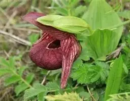 绿花杓兰:植株高30-60厘米,具较粗短的根状茎。茎直立,被短柔毛,基部具数枚鞘,鞘上方具4-5枚叶。…