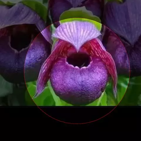 花瓣长圆状披针形,斜歪,长1.5-1.8厘米,宽5-6毫米,先端急尖,常多少围抱唇瓣,无毛;唇瓣囊状,腹背压扁,长1.2-1.5厘米,表面在囊口前方有小疣状突起;退化雄蕊宽椭圆状长圆形,长约6毫米,宽约4毫米,表面有小乳突。
