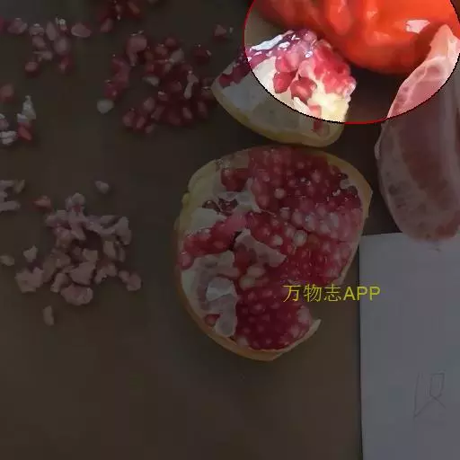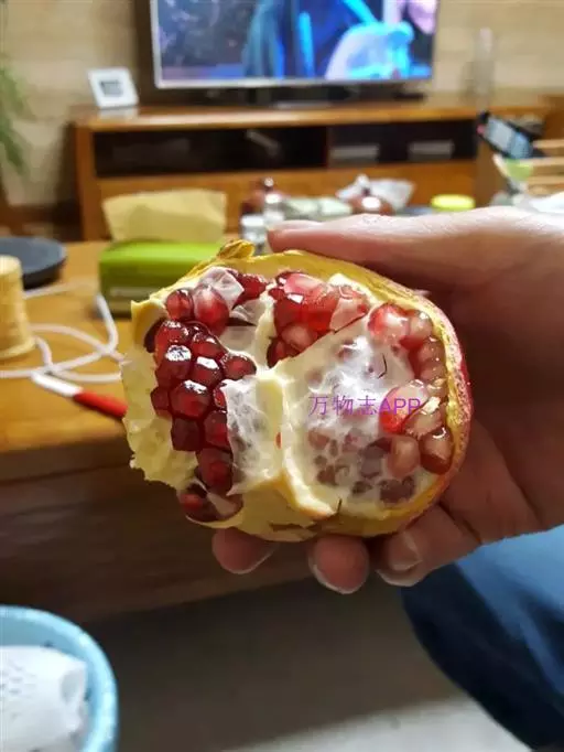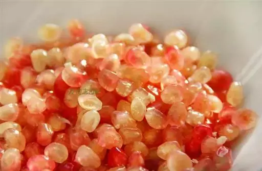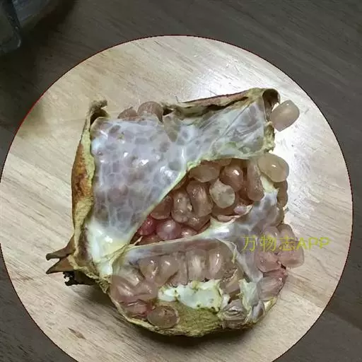 成熟后变成大型而多室、多子的浆果,每室内有多数子粒;外种皮肉质,呈鲜红、淡红或白色,多汁,甜而带酸,即为可食用的部分;内种皮为角质,也有退化变软的,即软籽石榴。