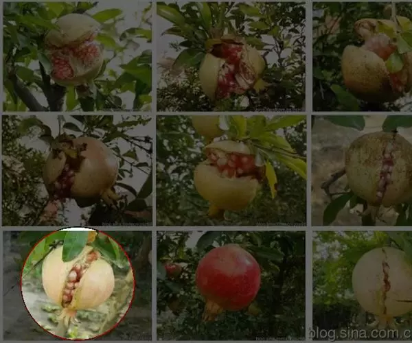 石榴每年开3次花,故有3次结果,一般以头花果或二花果发育良好。应根据品种特性、果实成熟度及气候状况等分期及时采收。石榴果实成熟的标志是: