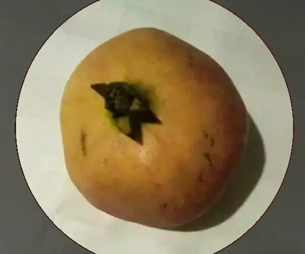 果皮半圆形或不规则块片,大小不一,厚1.5-3mm。外表面黄棕色、暗红色或棕红色,稍具光泽,粗糙,有棕色小点,有的有突起的筒状宿萼或粗短果柄。内表面黄色或红棕色,有种子脱落后的凹窝,呈网状隆起。质硬而脆,断面黄色,略显颗粒状。气微,味苦涩。以皮厚、棕红色者为佳。