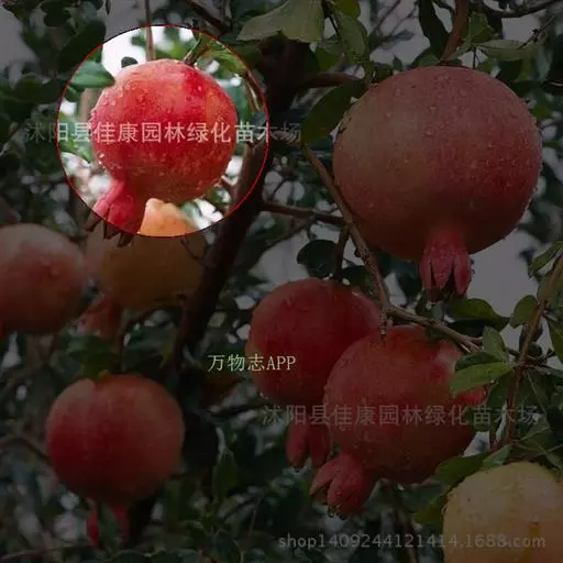 石榴(拉丁名:Punica granatum L.)落叶乔木或灌木;单叶,通常对生或簇生,无托叶。花顶生或近顶生,单生或几朵簇生或组成聚伞花序,近钟形,裂片5-9,花瓣5-9,多皱褶,覆瓦状排列;胚珠多数。浆果球形,顶端有宿存花萼裂片,果皮厚;种子多数,浆果近球形,果熟期9-10月。外种皮肉质半透明,多汁;内种皮革质。