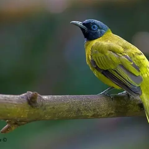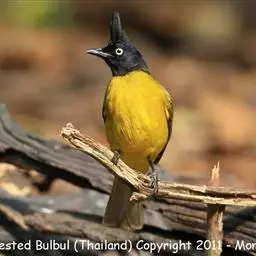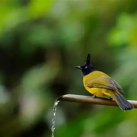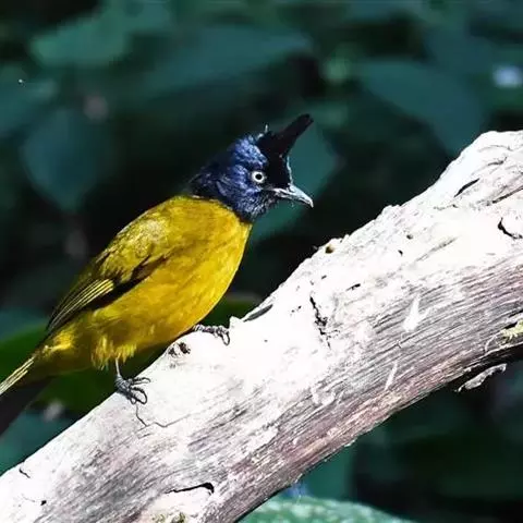 黑冠黄鹎:体长18-21厘米,是一种中等体型偏黄色鹎。整个头、颈、颏、喉黑色,头顶有显著直立的羽冠,…