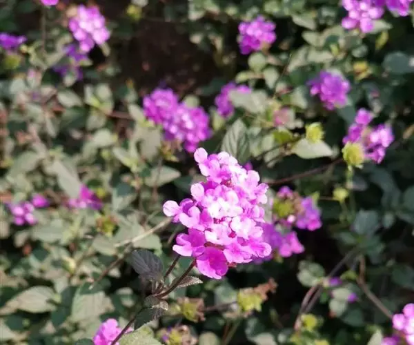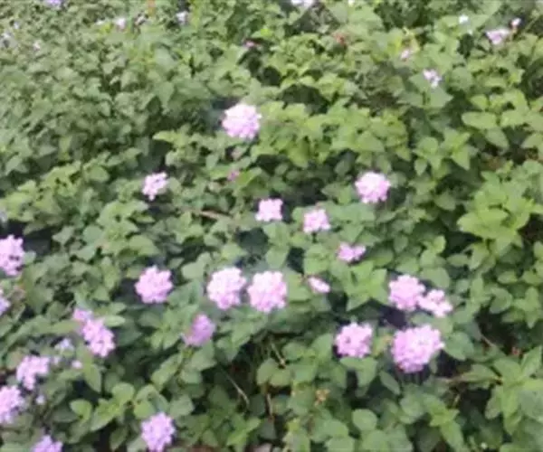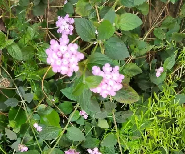 蔓马缨丹是一种灌木;枝下垂,被柔毛,长0.7~1米。叶卵形,长约2.5厘米,基部突然变狭,边缘有粗牙齿。