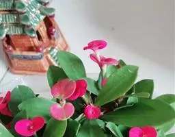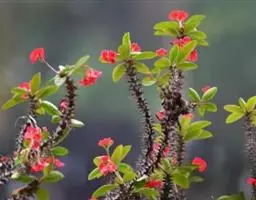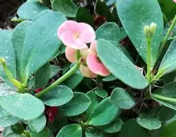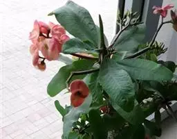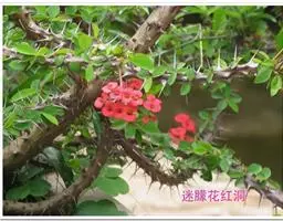虎刺梅:别称铁海棠,是蔓生灌木植物。茎多分枝,长60-100厘米,直径5-10毫米,具纵棱,密生硬…