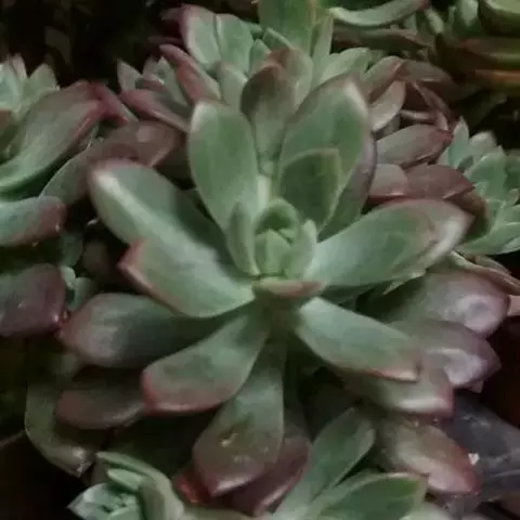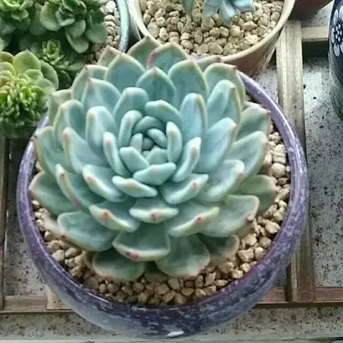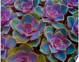 紫珍珠是景天科石莲花属的多年生肉质草本植物。植株中小型;叶片肉质,匙形,呈莲座状紧密排列;叶片粉紫色,…