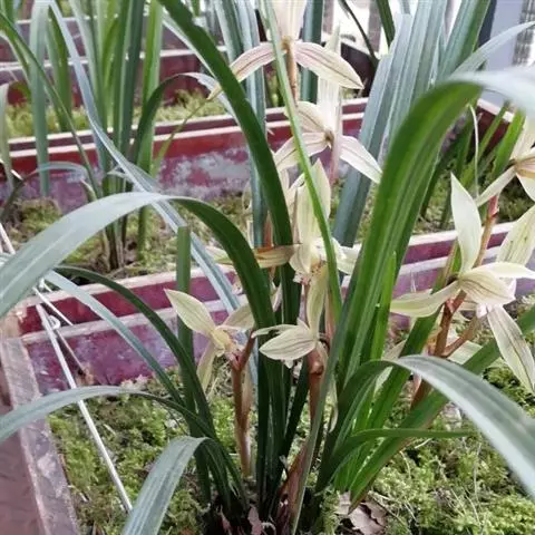 建兰素花,绿白色,清香,一枝开花5至12朵。叶色钢青,细而挺拔,有铮铮铁骨之相,所以叫铁骨素。在日…