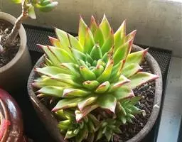 景天科风车草属的多肉植物,原产于墨西哥。株形和风车草属胧月极为相似。花瓣被蜡,叶排成延长的莲座状被…