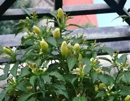 朝天椒茄科辣椒属一年或多年生草本植物;卵形;花通常单只生长于二分叉间,花梗直立,花稍俯垂,…