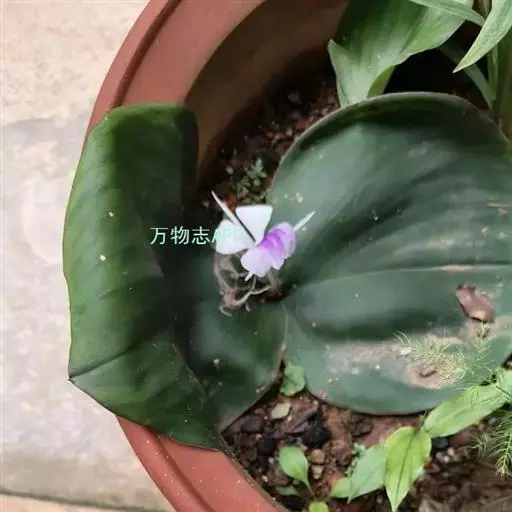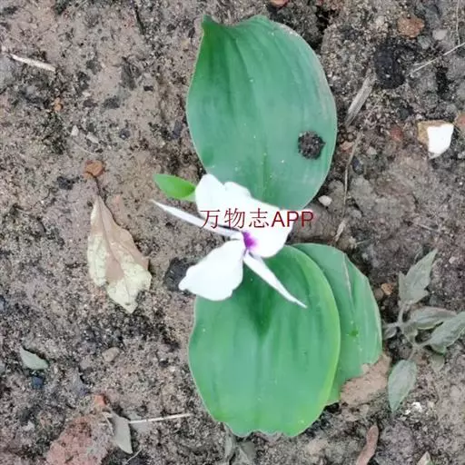 叶通常2片贴近地面生长,近圆形,长7-13厘米,宽4-9厘米,无毛或于叶背被稀疏的长柔毛,干时于叶面可见红色小点,几无柄;叶鞘长2-3厘米。
