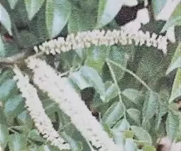 由穗状花序所排成的圆锥花序长15-20厘米;总花梗上被铁锈色柔毛;萼钟状,外面被疏柔毛,裂片长圆形,边缘密被柔毛;花瓣5,淡黄绿色,长于萼裂片,倒披针形,内面和边缘密被柔毛;雄蕊10枚,无毛,长为花瓣的2倍;子房长圆形,具柄,外面密被黄白色柔毛,有胚珠10-12颗。
