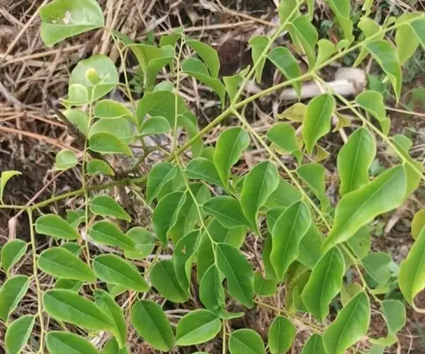 格木 乔木,通常高约10米,有时可达30米;嫩枝和幼芽被铁锈色短柔毛。叶互生,二回羽状复叶,无毛;羽片通常3对,对生或近对生,长20-30厘米,每羽片有小叶8-12片;小叶互生,卵形或卵状椭圆形,长5-8厘米,宽2.5-4厘米,先端渐尖,基部圆形,两侧不对称,边全缘;小叶柄长2.5-3毫米。