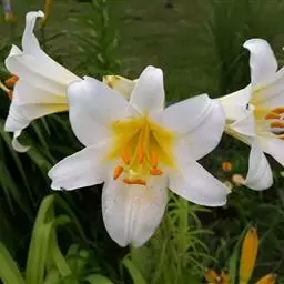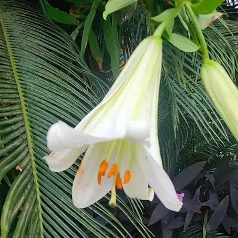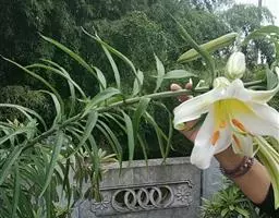 麝香百合是百合科百合属的多年生球根草本植物。鳞茎呈近球形,鳞片白色;茎高45-90厘米,绿色,…
