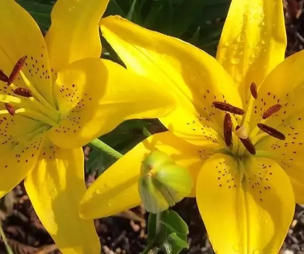 种球的解冻和消毒:种球到货后立即打开包装放在10-15℃的环境下进行解冻,待完全解冻后进行消毒。消毒方法:将种球放入千分之一的克菌丹、百菌清、多菌灵、高锰酸钾等水溶液中浸泡30分钟,也可以将种球放入80倍的40%的福尔马林溶液中浸泡30分钟,取出后用清水冲净种球上的残留溶液,然后在阴凉的地方晾干方可定植。国内有的种植基地,在定植前,剪去原有的基生根,这样有利于促发新的基生根。
