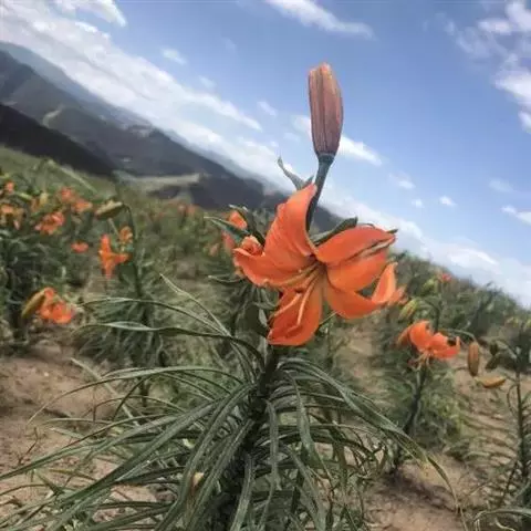 岷江百合是百合科百合属的多年生鳞茎草本植物。鳞茎宽卵圆形,鳞片披针形,茎有小乳头状突起;狭条形叶散生,…
