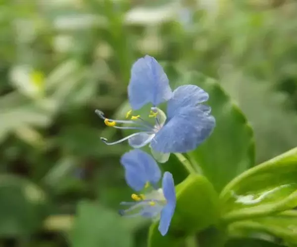 蓝色鸭跖草又叫野蝴蝶花、半日莲、碧竹子、兰花草、竹叶菜、鸡冠菜、鸭抓菜、淡竹叶花等
