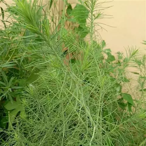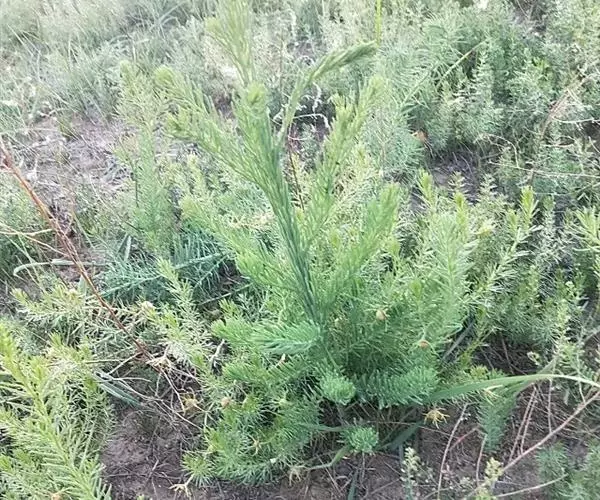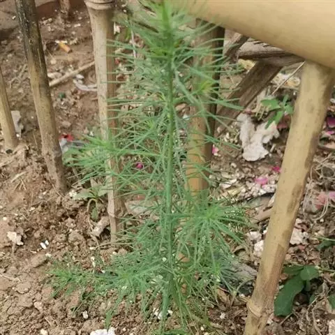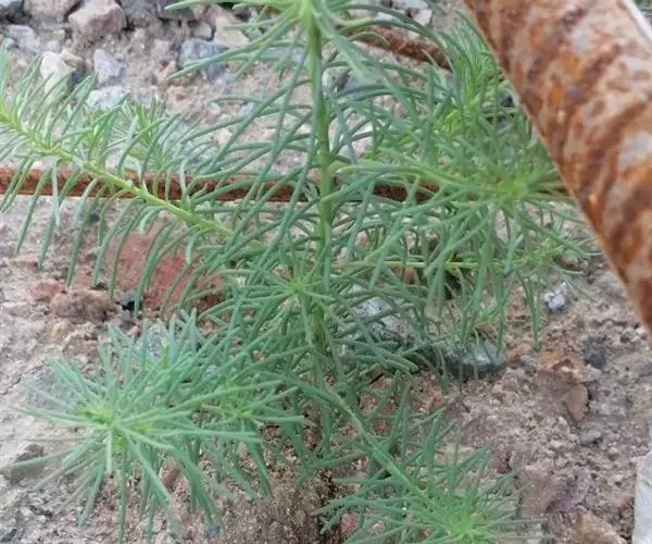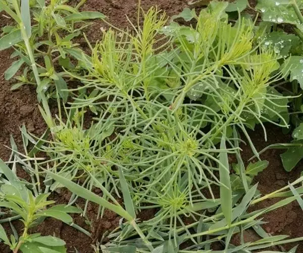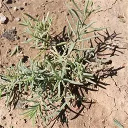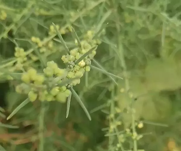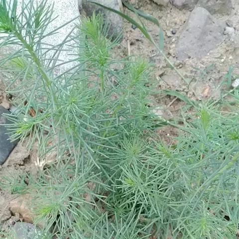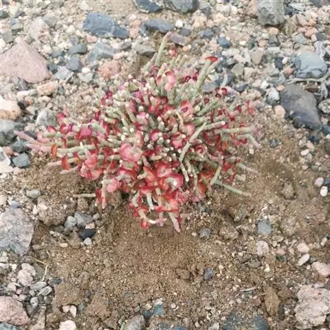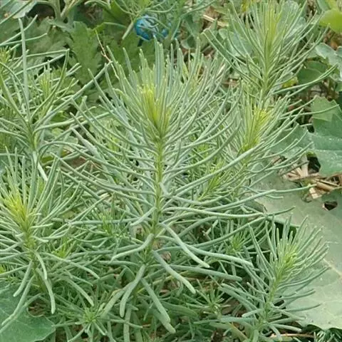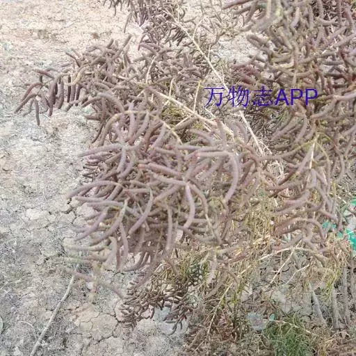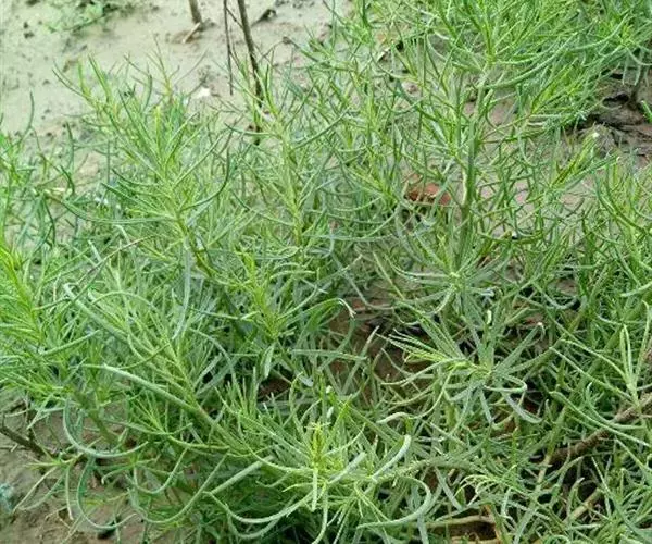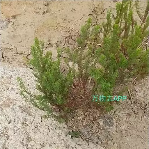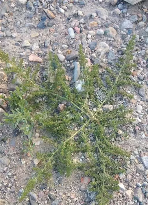 一年生草本,高可达1米。茎直立,粗壮,圆柱状,浅绿色,有条棱,上部多分枝;枝细长,上升或斜伸。叶丝状条形,半圆柱状,通常长1.5-5厘米,宽约1.5毫米,灰绿色,光滑无毛,稍向上弯曲,先端微尖,基部稍收缩。