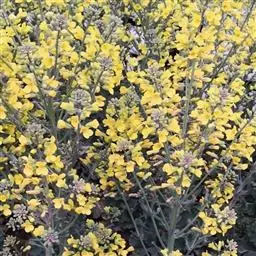 花鲜黄色,直径1.2-1.5厘米;花梗长4-6毫米;萼片长圆形或卵状披针形,长4-5毫米,直立,淡绿色至黄色;花瓣倒卵形,长7-8毫米,基部渐窄成爪。长角果较粗短,长3-6厘米,宽约3毫米,两侧压扁,直立,喙长4-10毫米,宽约1毫米,顶端圆;果梗开展或上升,长2.5-3厘米,较粗。种子球形,直径1-1.5毫米,棕色。花期5月,果期6月。