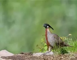 黄腹角雉:是鸟纲、雉科中国特产的一种鸟类。体长约50-65厘米。雄鸟上体栗褐色,…