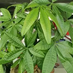 瓜栗 Walp. ),俗称发财树,木棉科小乔木,高4-5米,树冠较松散,幼枝栗褐色,无毛。小叶具…