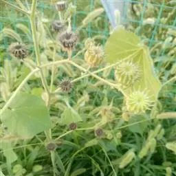 苘麻锦葵科苘麻属一年生亚灌木草本植物。茎秆较高,上面有柔毛;叶子较大且有纹路,浅绿色,边缘不平整,…
