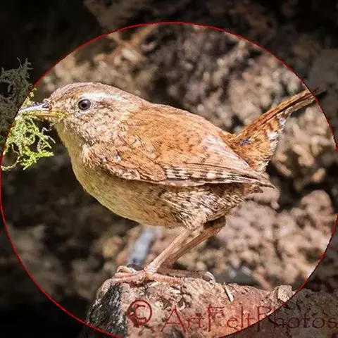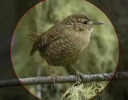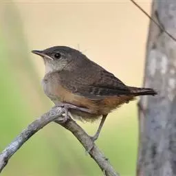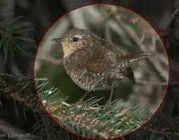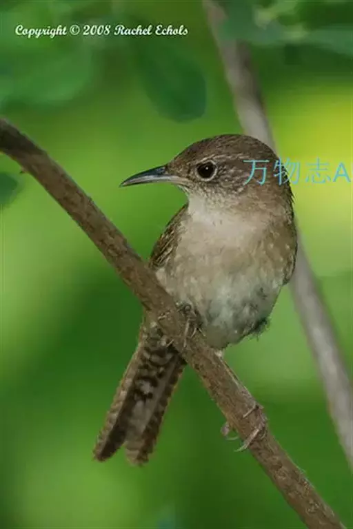莺鹪鹩(图2) 莺鹪鹩是一种小型鸣禽,身长11-13厘米。这可能是唯一容易与冬鹪鹩混淆的品种,区别是它的体积更小,尾巴更短,它较暗的下体没有明显的斑纹。