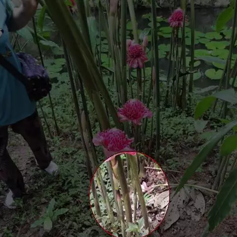 吊丝竹 花枝细长,无叶,节间长2-3.5厘米,一侧稍扁或具宽的纵沟槽,被有锈色柔毛,尤以扁平或沟槽处为密集,每节着生假小穗5-10枚,小穗体扁,卵状长圆形,长约1.2厘米,宽4-7毫米,鲜时呈紫茄色,干后变为棕黄色,含小花4或5朵,先端张开;颖通常2片,宽卵形,长6毫米,宽4毫米,无毛或近于无毛,边缘生纤毛;外稃纸质或稍变硬,广卵形或心形,长9-11毫米,宽5-6毫米,近于无毛(上部小花者疏生微毛),先端尖,具小尖头及不明显的多条纵脉,边缘具纤毛;内稃质薄,窄披针形,长6-8毫米,宽2毫米,背面疏生细毛,边缘及两脊上均具纤毛,脊间有不明显的3脉,先端锐尖;花药黄色;长5-6毫米,药隔向上伸出成为具毛的小尖头,在小花成熟时,整个花药能伸出花外;雌蕊除基部外遍体生细绒毛,子房卵形,花柱细长,柱头单一,常卷曲,具帚刷状毛茸。