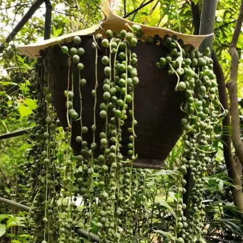 情人泪也叫佛珠吊兰,佛珠吊兰的学名叫翡翠珠,菊科千里光属多年生常绿匍匐生肉质草本植物。佛珠吊兰原产…