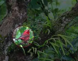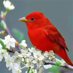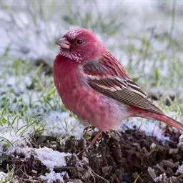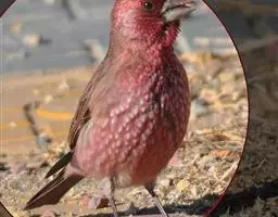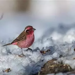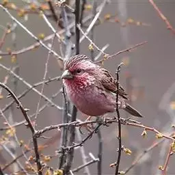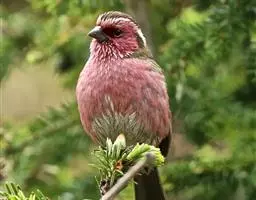 藏朱雀:全长约17-18厘米。雄鸟头部深红色具光辉,喉部暗红色具白色点斑;背部灰白色,各羽具玫瑰红…