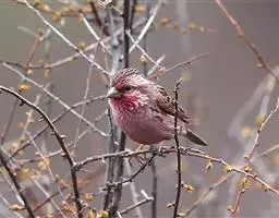 喜马拉雅白眉朱雀:小型鸟类,体长15-17厘米,体重24-35克。额基、眼先深红色,…