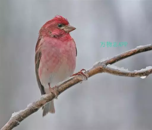 北朱雀,是燕雀科朱雀属鸟类。雄鸟额和头顶前部珠白色具窄的粉红色羽缘,…