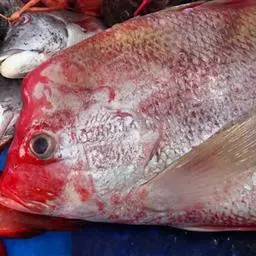 大眼鲷,Priacanthus tayenus (Richardson, 1846),大眼鲷科大眼鲷属的一种鱼类。又称大目鱼,大目莲,潮汕地区俗称红目鲢。体稍延长,侧扁;头中等大;吻颇短;眼大;口大,向上倾斜;下颌稍长于上颌,向前方突出;牙细小,圆锥形;前鳃盖偶角处有一个带锯齿缘的强大棘;体被栉鳞,细小而粗糙,坚固不易脱落;侧线完全;背鳍鳍棘向后逐渐增长;背鳍鳍条部与臀鳍同型;胸鳍短小,腹鳍长大,鳍膜间有黑色斑点;尾鳍上下叶向后呈丝状延长。