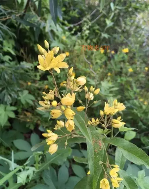 黄连花(学名:Lysimachia davurica Ledeb.)是报春花科,珍珠菜属多年生草本植物,株高可达80厘米,茎直立,粗壮,下部无毛,上部被褐色短腺毛,叶片椭圆状披针形至线状披针形,上面绿色,近于无毛,下面常带粉绿色,两面均散生黑色腺点,网脉明显,总状花序顶生,通常复出而成圆锥花序;苞片线形,密被小腺毛;裂片狭卵状三角形,花冠深黄色,雄蕊比花冠短,花药卵状长圆形,子房无毛,蒴果褐色,6-8月开花,8-9月结果。